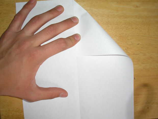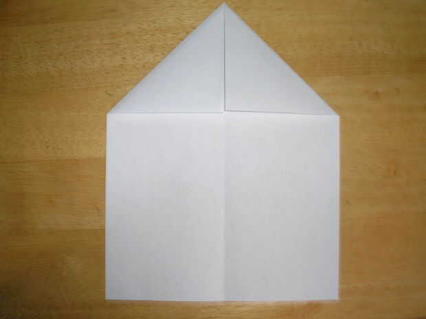 Ahora dobla la esquina superior derecha para hacer la parte superior del borde, hasta la línea de centro creado en el paso 2, alinee con la línea central. Hacer lo mismo con la esquina superior izquierda.