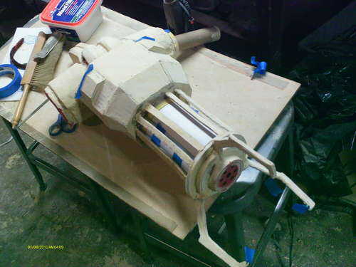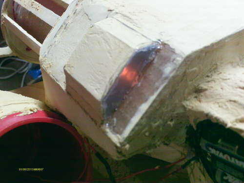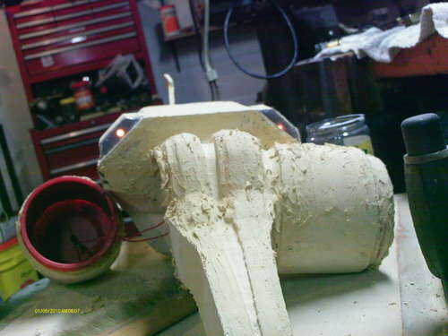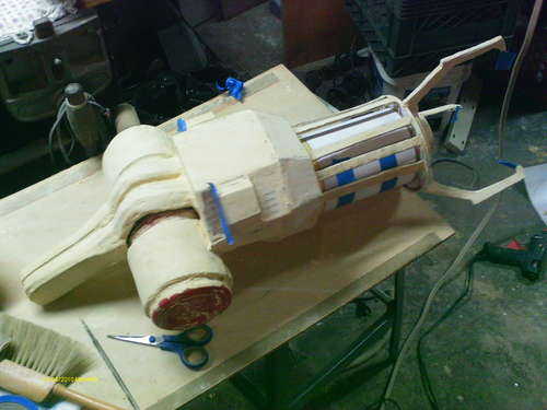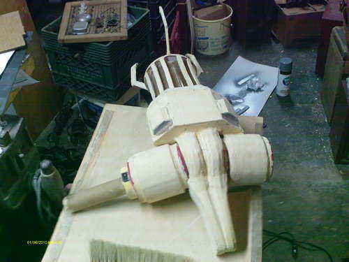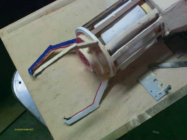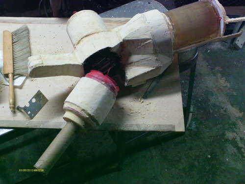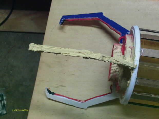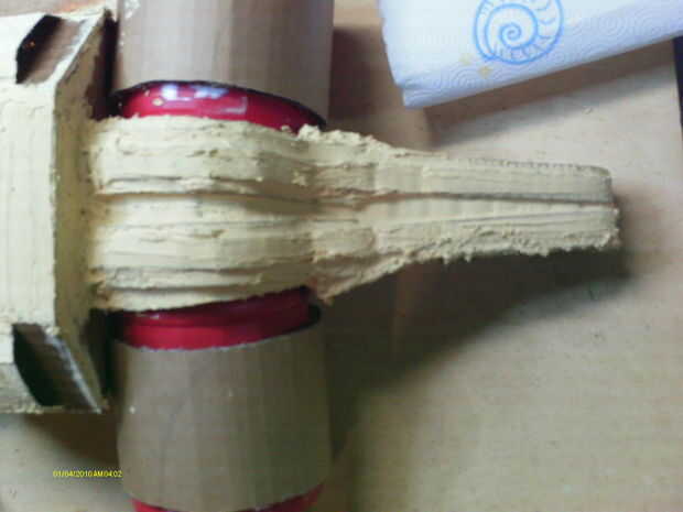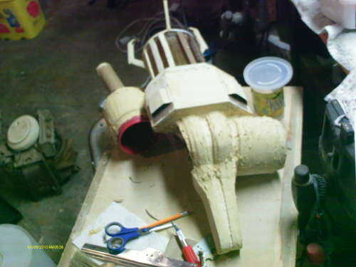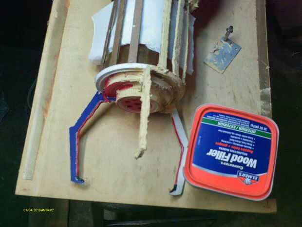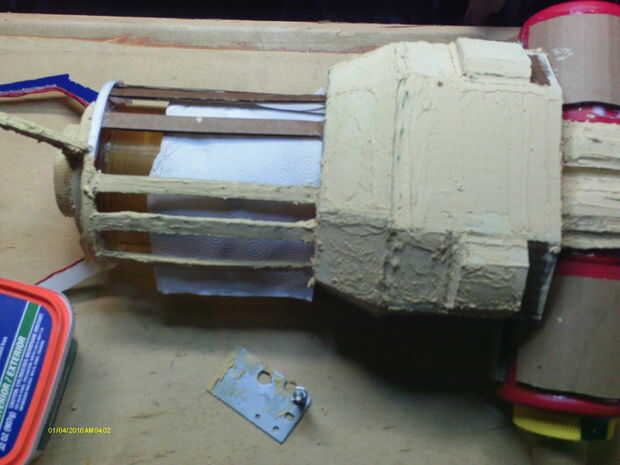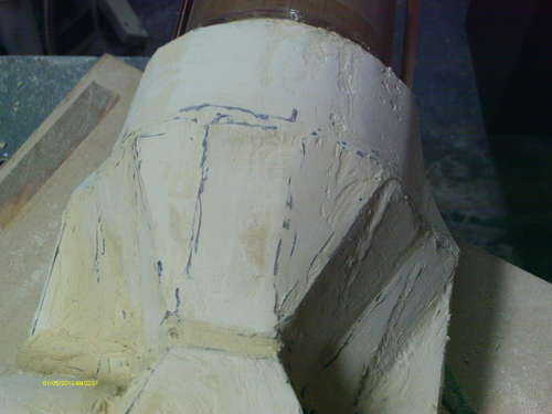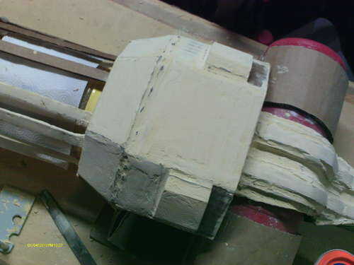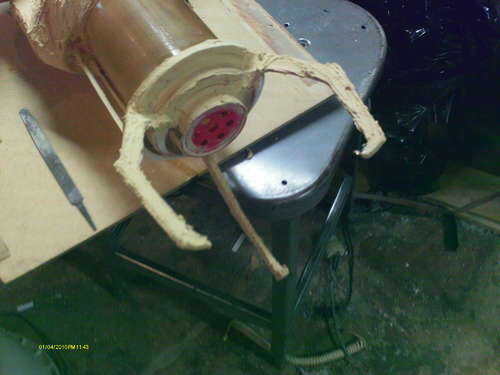 Para los cilindros, había algunas zonas donde era dobbing mucho de masilla. No lo hace . No seca. Tuve que encontrar una forma inteligente para cubrir las costuras con dos grandes bobinas de alambre lacado pegado en su lugar después de esta pintado. La otra opción es utilizar cartón para llenar el espacio y el relleno sobre eso. Así, tiene menos volumen a llenar y va realmente seco.