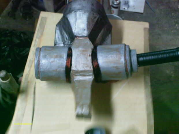 Las bobinas fueron hechas de alambre de laca. El cable alrededor de un tablero atado, despegó de la bobina, lo aplana y utiliza un martillo de metal sobre un yunque para aplanar aún más los extremos. Estas "bobinas" estaban calientes pegados entre los cilindros y el centro de la manija trasera para cubrir las costuras. También añadí pintura negra y la extensión alrededor de parece.