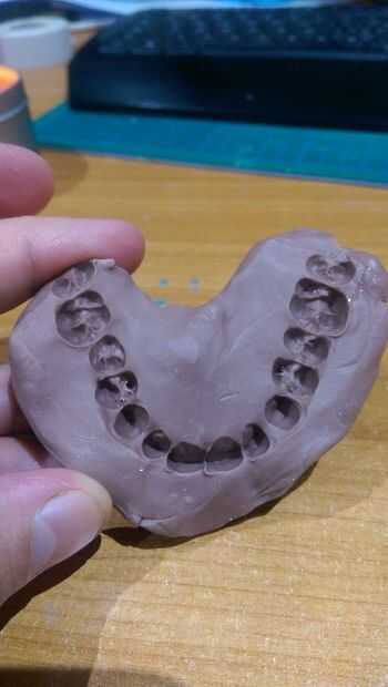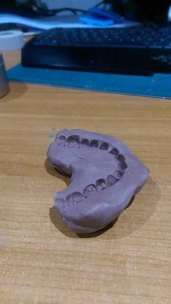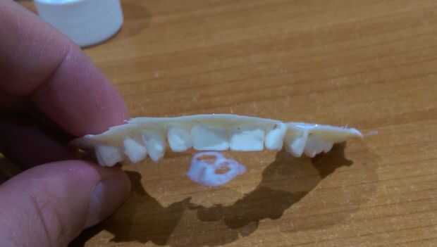 Una vez que había formado la mayoría de la forma de pequeños detalles pueden ser tallados en la máscara, como grietas en el cráneo, los orificios y los dientes (si eres lo suficientemente bueno como para esculpirlos). Pude conseguir una forma decente para los dientes con la arcilla, así que hice un rápido reparto de mina por morder en la arcilla y verter una pequeña cantidad de EasyCast. Esto tiene unida al cráneo y detalles finales y se hizo el alisado.