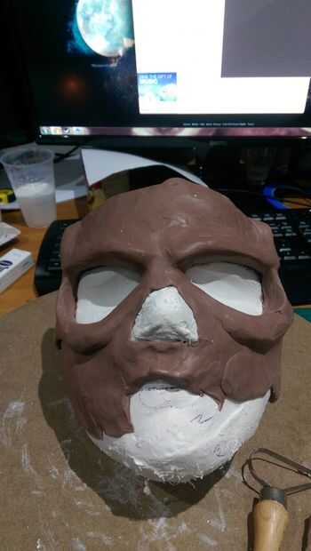 Total se olvidó de tomar una foto de la escultura final, oh bien. Tomé un molde de mi cara usando gladwrap y el paño del yeso así que la máscara final encajaría correctamente mi cara. Después de ablandar la arcilla en el microondas (3-4 minutos para una bañera completo 5 libras), tomé pequeñas tiras y ponerlas en la forma básica de la mitad del cráneo, dejando los agujeros para los ojos y la nariz. Es mejor construir varias partes como las crestas y de cualquier forma con los dedos cuando está caliente o afeitado de la arcilla con las herramientas de lazo hasta parece satisfactoria.