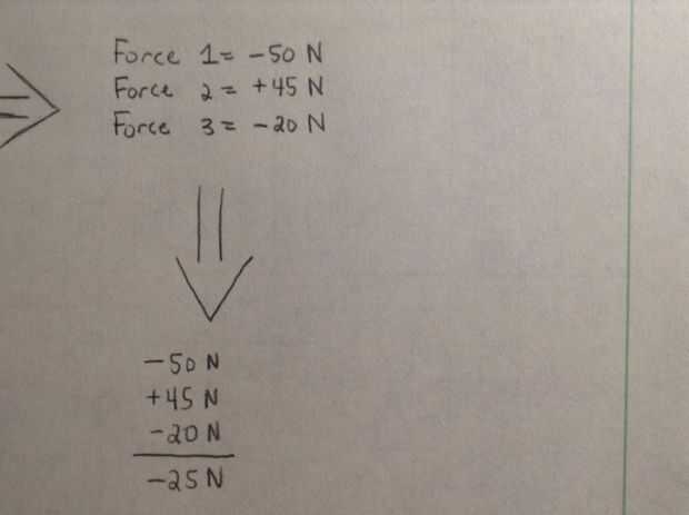 A continuación, agregará todas las fuerzas que acabo de escribir abajo juntos. Como se observa en el cuadro de acompañamiento, - 50N + 45N-20N = - 25N. Dependiendo de las fuerzas dadas, una respuesta que es positiva, negativa o cero es una respuesta aceptable. En este caso, la fuerza neta es negativa porque hay una mayor fuerza negativa total actuando sobre la viga que la fuerza positiva total.