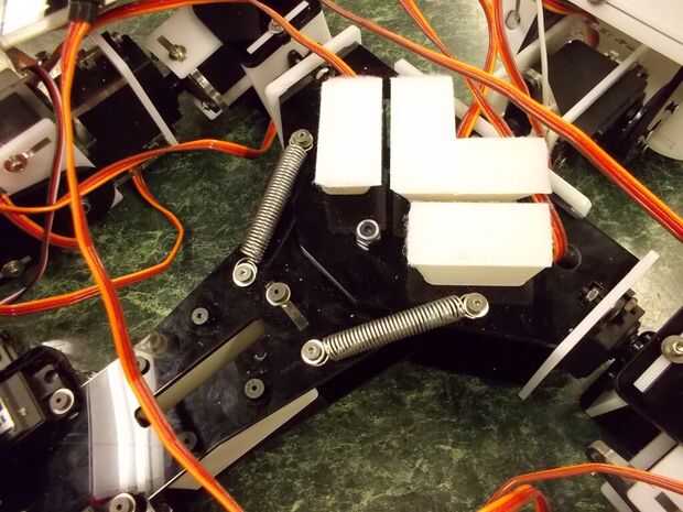 Pegamento el 3D impreso mochila conector en la placa trasera del tórax. Cuando el pegamento se haya secado, fije listones de fuzzy loop Velcro en la parte superior del conector y tiras de igual tamaño del gancho del Velcro en la placa trasera de la mochila. Ahora fije la mochila a la placa de tórax posterior del robot mediante el Velcro en el conector impreso 3D.