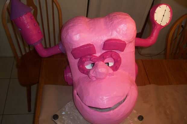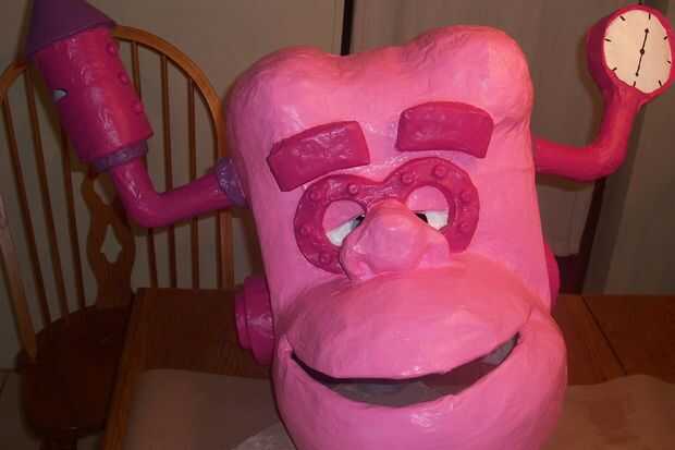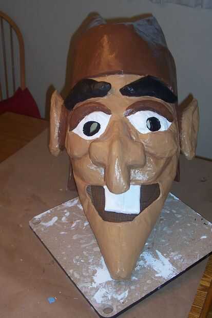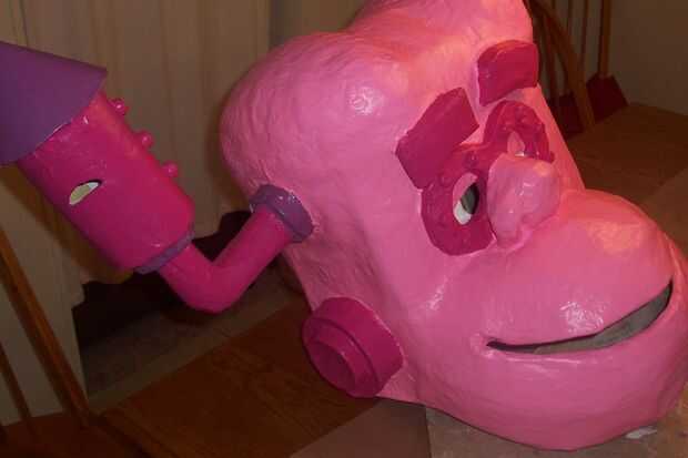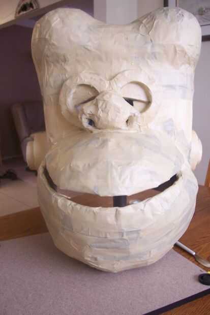 La idea de globo punch era grande para la boca del cañón. Una vez hice usé cartulina para marco el resto de la cabeza de Frank. Tenga en cuenta las pelotas inflables para los lóbulos. Cabeza del Conde Chocula inicialmente fue construida enteramente fuera de cartulina, cinta adhesiva y cinta de enmascarar. Cada máscara cubría casi enteramente en periódico y cinta de enmascarar para agregado grueso y la estabilidad. Papel maché fue hecha con harina, agua, sal y algunos Elmer. Sentí que podía han tomado más tiempo con el papel maché para obtener un resultado más suave. Al final mi impaciencia ganada hacia fuera y lo hice solo 2 capas de papel maché y muy poco a no lijado. Tenga cuidado con el proceso de secado. Si su armadura no es sólida bastante él deba ser arriostradas en morir para mantener la forma que su intención.