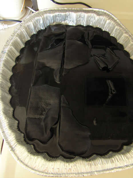 2 - las piezas fueron cosidas juntos para crear los botones de liga y teñidas de negro. Una vez seco, pequeños tramos de cintas se cortaron y pegados en cada cojín para asegurar los anillos en D para ellos.