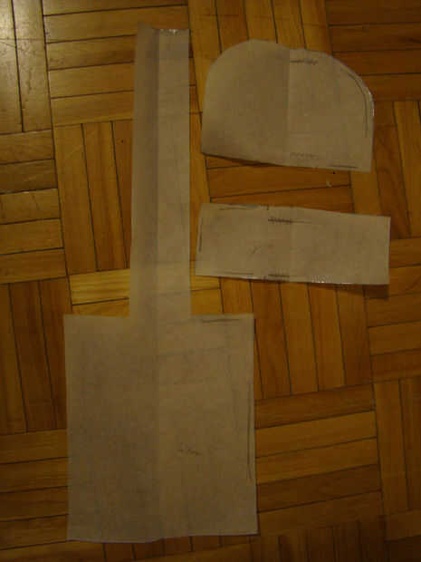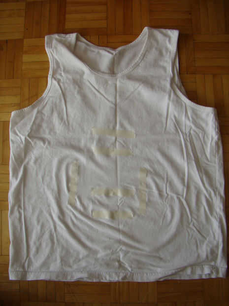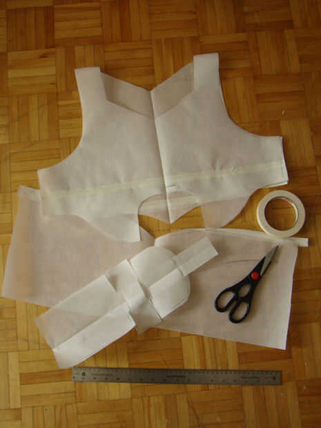 Llevaba camiseta sin mangas 2-A y cinta adhesiva se utiliza para marcar apagado cómo las secciones abs sería separado. La forma de la camisa se trazó en paperand las diferentes piezas que sería necesario se midieron y reducir en consecuencia. Una serie de plantillas fueron creados para el pecho y la espalda, superior de la espalda baja, los laterales y tres secciones para el abs. Realmente eran todos grabado juntos y desgastado como si fuese la cosa real. Se realizaron los ajustes según sea necesario.