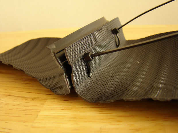 4 - las diferentes piezas de la armadura fueron atadas con correas de amarre (ver fotos). Cinta adhesiva se aplicó sobre los bits extras para evitar meter no deseados cuando se desgasten.