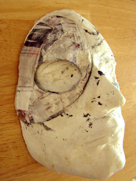 3 - harina añadido al agua como mezclé hasta que se forme un líquido espeso. En el proceso de grupos fueron divididos para mantener la coherencia de la solución. Tiras de periódico se sumergieron en la mezcla antes de aplicar sobre el molde en la forma general de la placa frontal. Dos o tres capas fueron suficientes para construir la capa base, en mi caso. Cuando esté seco, cortar la forma deseada.