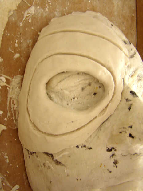 Arcilla de papel 4 entonces fue aplicada en la parte superior del papel maché. Lo vi en una tienda de artesanía. Es algo parecido a la arcilla de modelado muy suave, pero hecho con una mezcla de papel que puede ser secado para endurecer. Después de que fue capas de buen espesor y afilado de los bordes exteriores hacia abajo, procedí a labrar los surcos.
