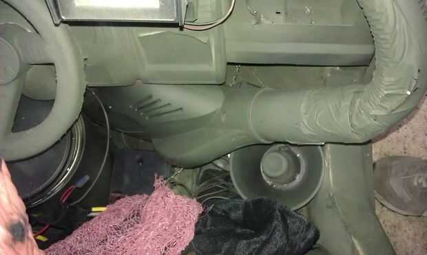 Tenía un conjunto de walky-talkys y guardé uno conmigo dentro de la casa y poner el otro en el powerwheels. Usé un cuerno PA comprar de ebay hace varios años y tiene un conector de enchufe estéreo de 1/8 que encaja en el enchufe de salida de los walky talky. Me había descargado varias risas de miedo en mi teléfono y jugar a través del walky talky para el powerwheels. Esto realmente parecía funcionar bien.
