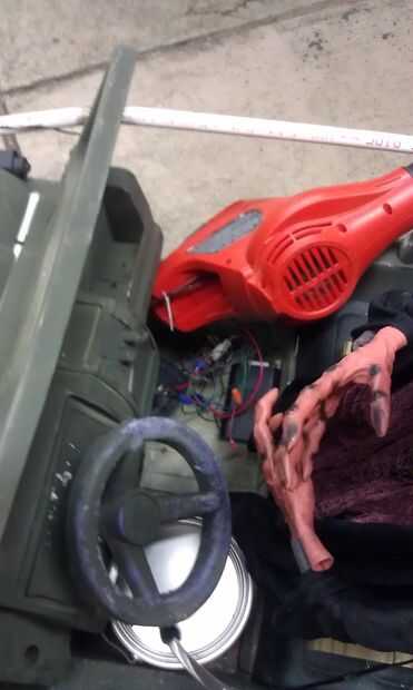 pongo un soplador inalámbrico en el powerwheels para soplar aire en las caras de los niños. Usé la batería actual que viene con ellos. Conecte el terminal de tierra al terminal de tierra del soplador inalámbrico, conecte el terminal positivo a un lado de un relé en el conmutador de relé de 8 canales y luego al otro lado del relé va al terminal inalámbrico soplador. Al cerrar el relé que se encienda el ventilador... sólo asegúrese de corte el interruptor del soplador inalámbrico. Es un poco difícil de ver en la imagen, pero usé una manguera corta para dirigir el aire del ventilador en la parte delantera del parabrisas de la powerwheels.