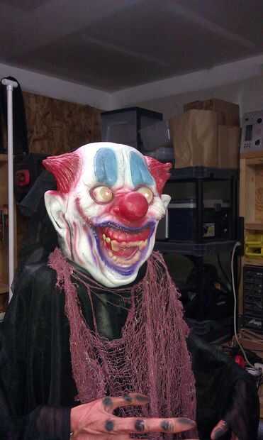 agregué LEDs en los ojos de payasos que le parecen más espeluznante. Usé algunos LEDs de partz hobby que tendrá 5 voltios entrada para hacerlos brillar. Recuerde cómo el motor de sabertooth controladores han construido en el regulador de 5 voltios, bien simplemente conecte el LED en el receptor RC y se enciende al encender el interruptor principal de la powerwheels. Taladré agujeros payasos ojos y pescan los cables a través y completamente hacia abajo el torso de payasos y en el receptor. Usé más espuma para recortar unos ojos de miedo (mi esposa arte tuvo que ayudarme allí) y poner LEDs en ellos también.