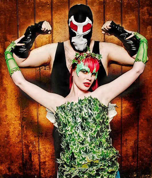 El traje de Bane fue el más fácil de los tres. La máscara fue hecha de la modificación de una campana de traje de gato. Los agujeros de los ojos rojos son tul cuando el resto de la máscara es un punto. Pongo una cremallera en ella para un fácil acceso para cuando pongo venida de tubería desde que los guanteletes de cuero del faux. En el tubo era con pilas led luces para que Bane podría encender. Los guantes se hacen del cuero del faux del mismo. La camisa era un material de adaptación. El cinturón de utilidad fue hecho de correas de nylon y algunos vynal para hacer las bolsas. Tuvimos mucha suerte de contar con la ayuda de un amigo fotógrafo a capturar lo que había creado.