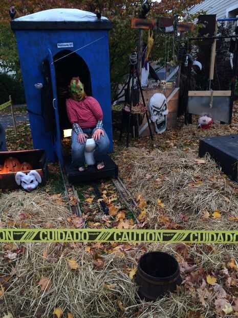 • Apoyo en un inodoro sale el orinal Porta con un abridor de puerta de garaje y cuando se detiene en el extremo una válvula de aspersión vuelve a hacerle pis en un balde