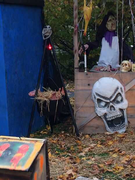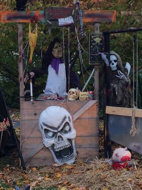 • Parada de carnicero que se parece a un puesto de limonada, tiene partes del cuerpo y un montón de cosas horribles