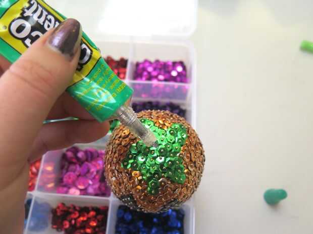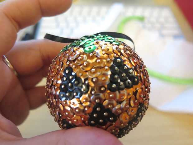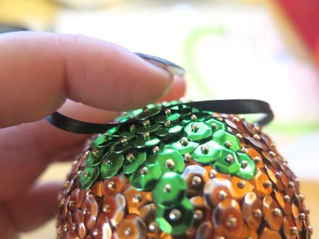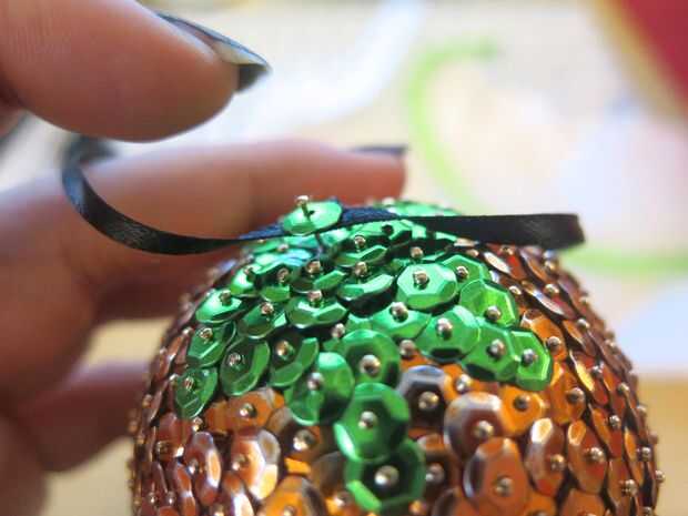 Si quieres colgar tu Adorno, puede agregar fácilmente una cadena cortando un tramo corto de la cinta y perforar ambos extremos con el perno después de encadenar una lentejuela en el pasador de primera. Poner pegamento por parte de su ornamento que desea adjuntar la cinta, después pegue el pasador con la cinta y lentejuelas. Póngalo a un lado para el pegamento se seque.