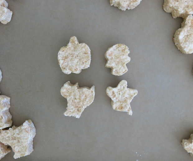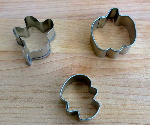 - Rocíe sus cortadores de galletas con spray antiadherente. Lo hice un poco tarde y creo que por eso la mezcla se pegue. Además, el plástico podría funcionar mejor aquí que los cortadores de la galleta de metal.