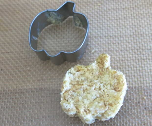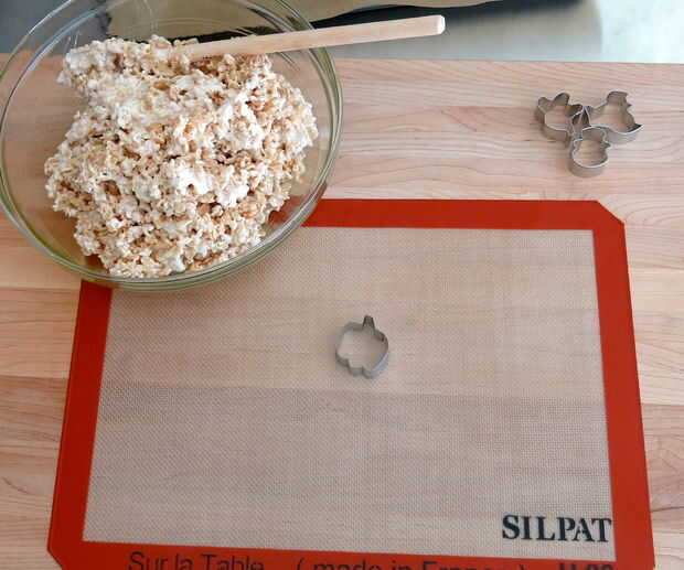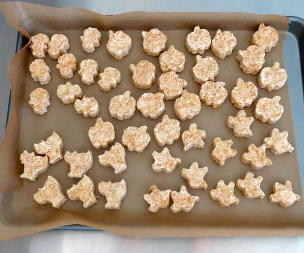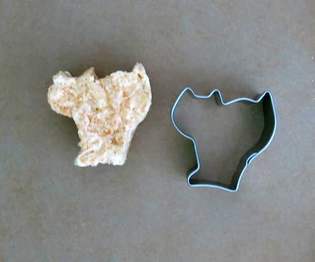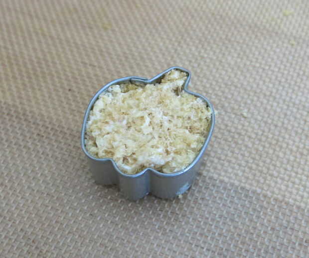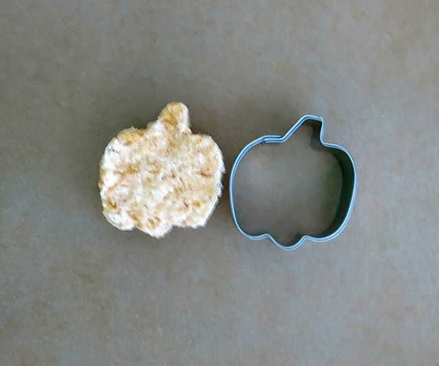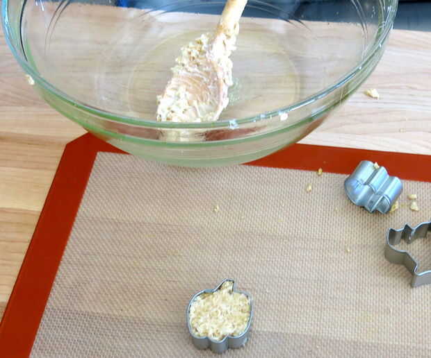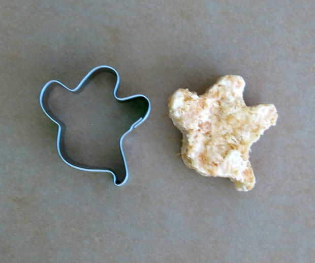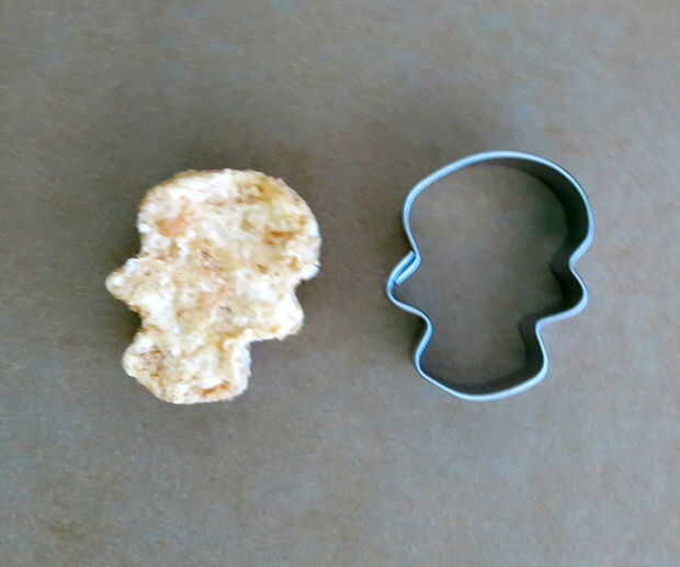 - Aplastar la mezcla de Krispies en los cortadores de la galleta. Y cuando digo smash, smash. Quieres escuchar los Krispies crunch como ensuciarse en. Esto les da una forma agradable de fuerte y definida.