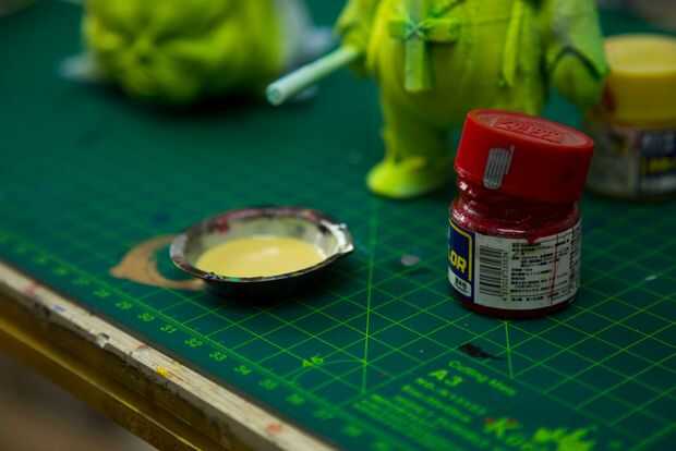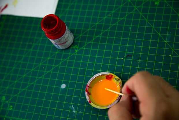 Agregue un poco rojo en la paleta. Repita el paso 3, rociar una amplia gama y cubrir la parte hundida.