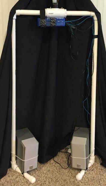 Tengo algunos tubos de PVC y corte longitudes de se para el cuello y lo suficiente de un marco para dar la estabilidad decente de cráneo. Usé un par de tornillos y tuercas para fijar el cuello en el cráneo. Los altavoces que utiliza para ayudar a amplificar el audio ayudó a dar alguna necesitan peso en el cuerpo de calavera.