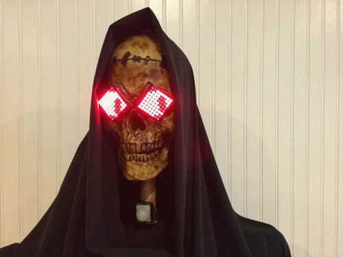Calavera con ojos de LED que crispa (OMG, Omaha Makers Group)