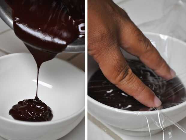 Vierta en una envoltura de plástico recipiente y presione hacia abajo sobre la superficie a sellar cualquier aire y humedad. Coloque en el congelador por un par de horas o en la nevera durante la noche.