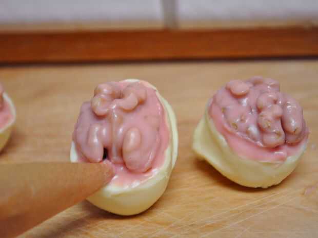 Si usted quiere, puede pipa caramelo un poco alrededor del borde para sellar el cerebro en el cráneo y completar la ilusión.