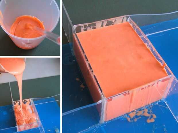 Vierta la silicona de una altura de aproximadamente 12" sobre su molde. Llamado un 'pour estiramiento' ayudará a elimina las burbujas de aire incorporadas en la silicona durante la mezcla. Vierta en el mismo lugar, como una esquina o en algún lugar no directamente encima de la original y permite que poco a poco sigilosamente sobre las piezas originales hasta que queden totalmente sumergidos.