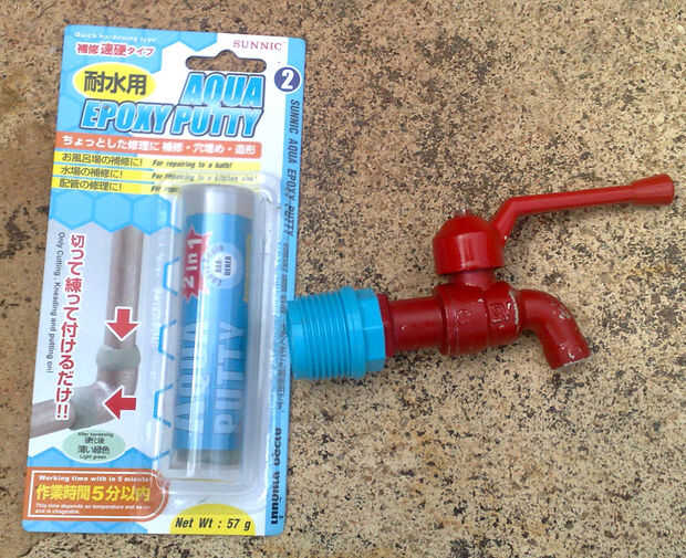 El ingrediente mágico. Este Masilla epoxy es totalmente impermeable y muy duro si. Necesita ser amasada para mezclar la masilla con su endurecedor. Se pone muy caliente y pegajoso. Cuando es un color uniforme, formar alrededor de la guarnición de golpecito plástico y empujar en su agujero.