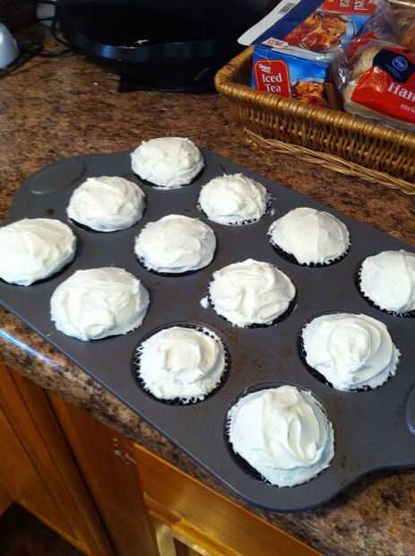 Acababa de usar un pastel de caja y hielo! Usted puede hacer casera si lo prefieres! Ir por direcciones en caja! Para mantener húmedos cupcakes es vital a tiempo tus cupcakes! Prueba de palillo de dientes es buena para ir! Palillo palillo en el centro, si sale limpio, se hacen los cupcakes! Tan pronto como usted tire bandeja cupcakes quitar cuanto antes que se enfríe, no deje en sartén caliente siguen a cocinar, que perderá humedad. Después de que enfríen, poner glaseado blanco en ellos!