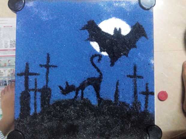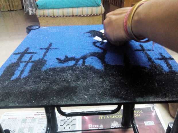 Para hacer el color negro he sonrió carbón con el polvo blanco.