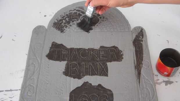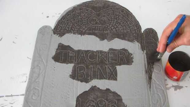 Usted puede hacer su lápida aparecen mayores pintando de una manera que hace que se vea degradado. Piedra que ha estado mucho tiempo fuera se recoge sucio y molde. Esto oscurecerá la piedra. Así que para simular esto, tenemos que aplicar una pintura de color más oscuro.