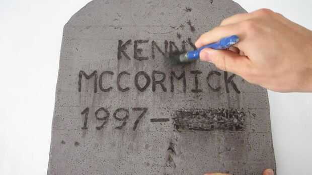 Para duplicar este efecto, tome la pintura oscura que usaste en el paso pasado y Unte una pequeña cantidad de ella en las letras. Luego use una toalla de papel o con un cepillo de esponja para limpiar la pintura de la cara de piedra circundante. Ahora debe tener pintura en las letras pero no a su alrededor. Que este siente por unos minutos. Luego tomar un pincel pequeño y cepille suavemente la pintura en las cartas de abajo sobre la cara de piedra por debajo de ellos. No exagere. Desea una decoloración suave de color debajo de las letras. Cuando estás feliz con como se ve, ponen la lápida en la espalda y deje que el resto de pintura seca completamente.