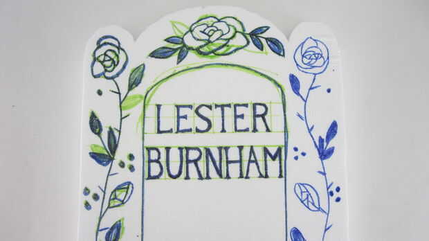 Ahora es necesario marcar las líneas para las tallas en su lápida. Lápidas de todos tendrá un nombre y una fecha. También pueden tener una descripción de la persona o cómo murieron. Muchas lápidas también tendrá una decoración diseños tallados alrededor del exterior de la losa.
