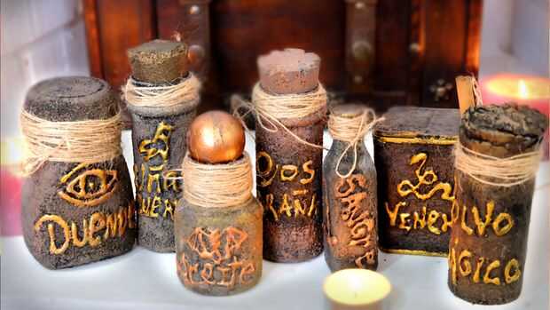 Halloween, decorar sus viejo frascos para parecerse a una bruja