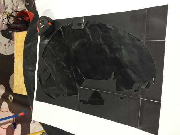 Aplique una capa pesada de goma blanca en aerosol sobre la plantilla.