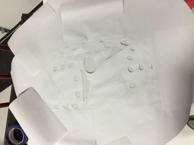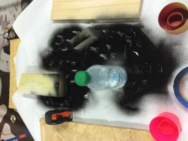 Otra vez he añadido varios pedazos de papel alrededor de la plantilla para evitar exceso de rociado.
