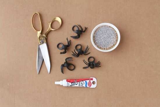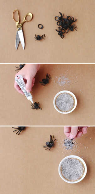 Quería usar una bolsa de anillos de araña barato que encontré en la tienda de artesanías para Halloween, pero sabía mantener en su forma de anillo original no funcionaría. No cupieron mis dedos (al parecer) gruesos. Así les incorporé en arándano espeluznante pastel centro de mesa que es partes iguales juguetón y espeluznantes. Aquí está lo que usted necesitará hacer su propia...