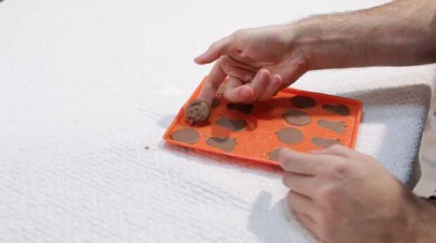 Ahora vamos a eliminar el caramelo los moldes! Simple como eso. Otra nota - según el chocolate que utilizas, dependerá de cómo reacciona el chocolate a temperatura ambiente. El chocolate que usé aquí (barra de chocolate normal y chips de chocolate) se fundirá un poco a temperatura ambiente con el tiempo. Así que guárdelos en la nevera. También puede comprar los derretimientos de caramelo chocolate, si usted los usa que el caramelo no se derrita tan fácil a temperatura ambiente. A menos que atemperar el chocolate. Chocolate candy melts no necesitan ser templado. Que ambos gran gusto.