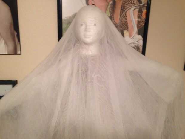 Agarrar la pala cabeza de espuma de poliestireno hacia fuera de los párpados no totalmente sólo para poner la claros mármoles, piedras, joyas etc. Pegamento caliente en el, esto es puramente opcional, usted siempre puede dejar los ojos y saltarlo aplicar el pegamento en toda la cara (se aplican generosamente) agarra su tramo de tela de queso alrededor de la cara para capturar las características de la cara, ahora ponerlo a un lado y agarrar sus suspensiones de 2 hilos abierto uno de ellos y páselo por el otro como si se tratara de hombros y los brazos asomando , cinta a la mitad, ahora poliestireno los brazos y pegar la cabeza en forma de suspensión, paño de tela y queso encolado caliente como.