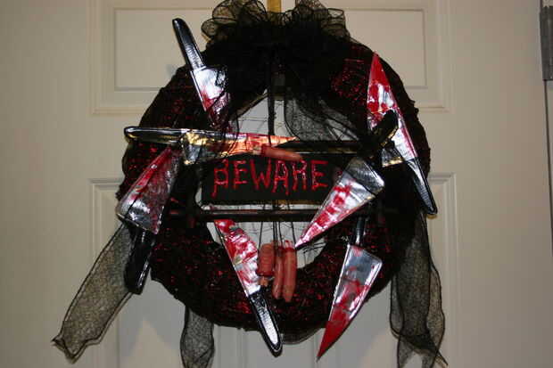 Por último, colgar esta tremendamente asustadiza corona en la puerta y deja que los jadeos y gritos comienzan! Mmmmm-ha-ha!