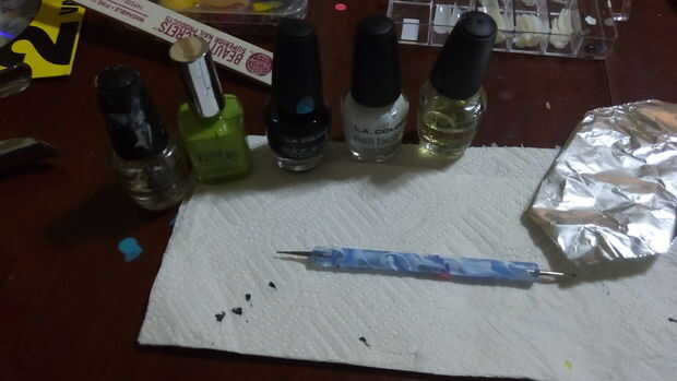 se puede hacer este arte de uñas con diferentes coloresPaso 1: materiales 3 esmaltes de uñas de diferentes coloresPalillo de dientesHisopo de algodónBandeja pequeñaUñas limpias (se puede ver mi instructable sobre cómo limpiar tus uñas)Paso 2: procedi