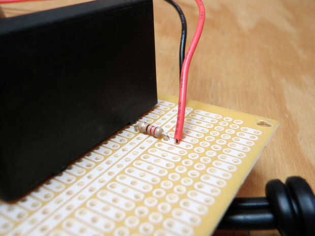 Conectar una resistencia de 220 ohmios a la entrada de voltaje positivo de DC y conecte un cable rojo al otro extremo de esta resistencia.