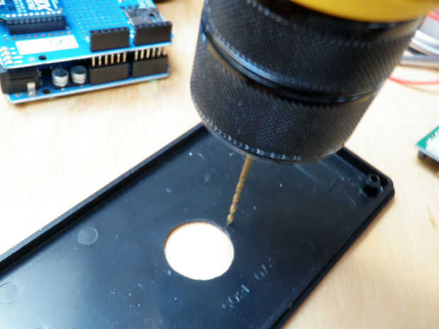 Tomar una broca que se ajuste a través de los orificios de montaje del sensor PIR. Pasar por cada uno de los agujeros y girar sobre un poco para hacer marcas de perforación.
