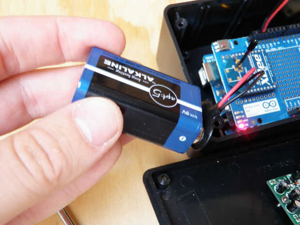Conecte el conector tipo M a Arduino y una batería de 9V.
