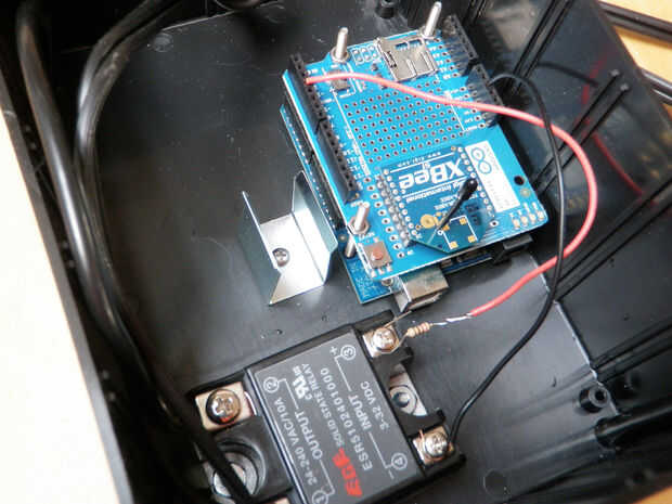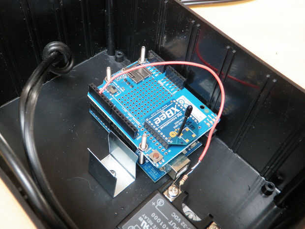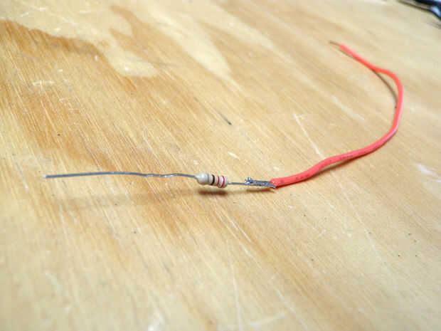 Solde un resistor de 220 ohmios a un extremo de un cable rojo. Enchufe un extremo de este cable en el pin digital 3 en Arduino y sujetar el otro extremo al terminal positivo de DC en el relé.