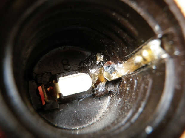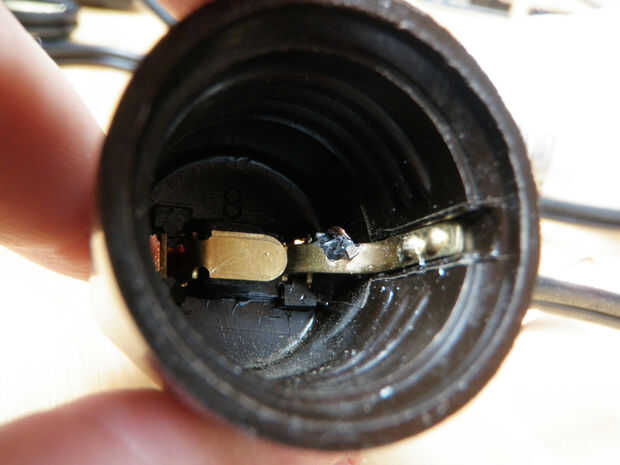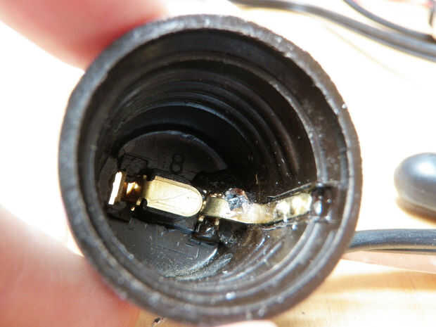 Coloque con cuidado algunos epoxy más a cada lado para mantenerlos mejor y mejor les de no tocar. Asegúrese de que el epoxi no interferirá con la bombilla de luz que entran en contacto con la lengüeta metálica del lado de la toma.