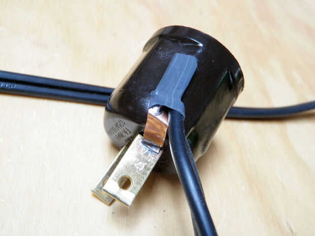 El otro cable del cable de la lámpara a la pestaña de cobre de la soldadura.