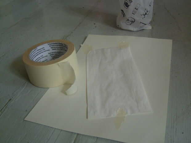 Fijar la bolsa de papel sobre una hoja de papel con cinta de enmascarar. No utilice cinta de plástico como la cinta Scotch si utiliza una impresora láser. Se derrite bajo el calor de la impresora y puede causar un atasco de papel o romper la impresora.