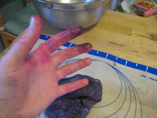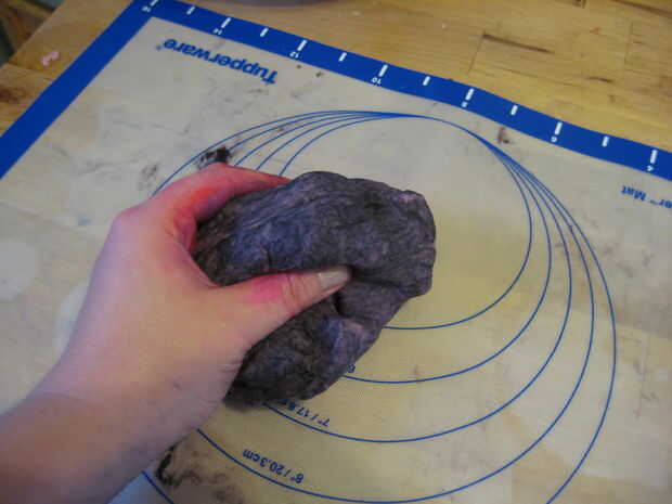 Hacer una masa de pastel, o de una mezcla de helado, o desde cero. Por falta de tiempo, opté por una mezcla de caja, así que mezclé 1/4 de taza de agua caliente con la mezcla para formar una masa. Una vez que la masa esté lista, se mezclan en una combinación de colorante para obtener una masa marrón, similar al marrón de las albóndigas.